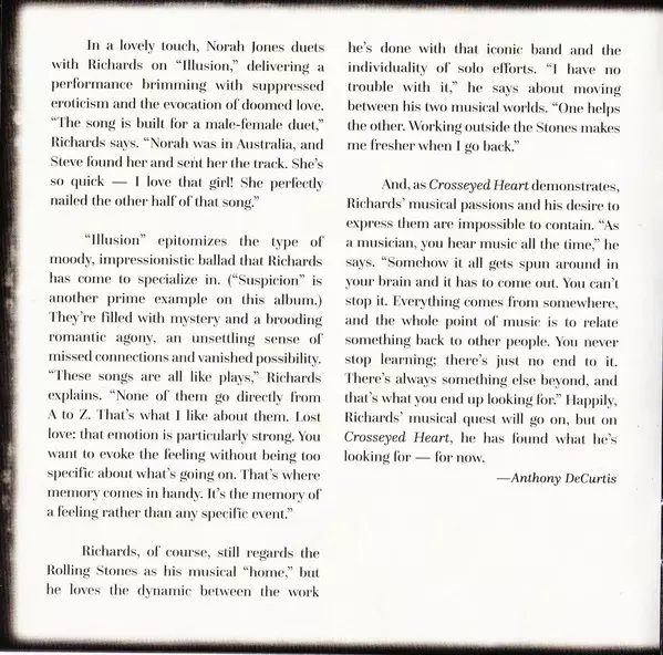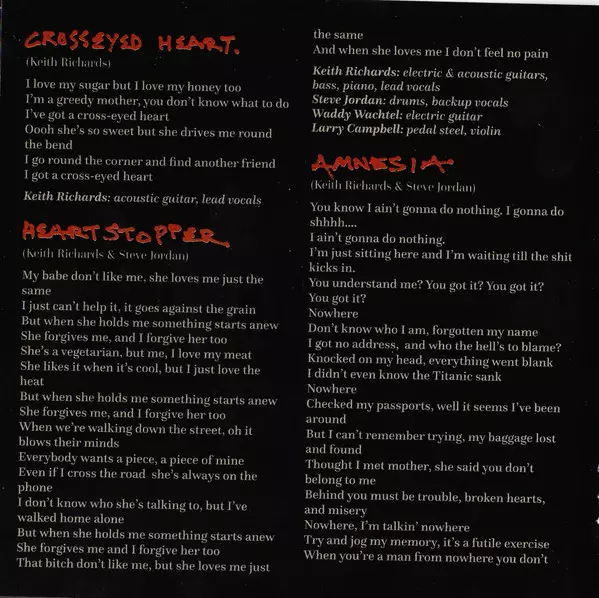 Keith Richards: Crosseyed Heart La version sur CD en Norme édition. Cette édition particulière a été publiée en L'Europe dans la maison d'édition Mindless Records (3) En collaboration avec Virgin EMI Records Le 18 septembre 2015.