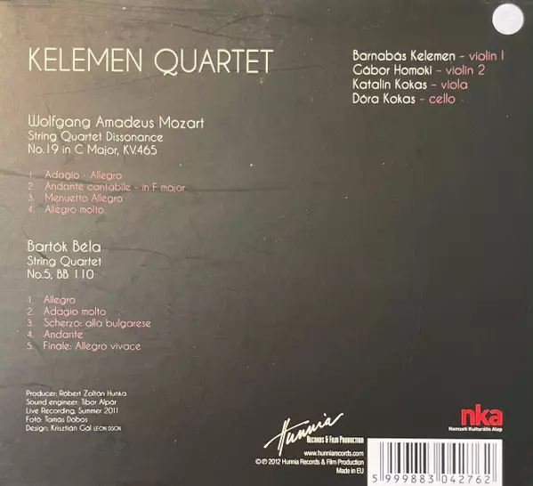 | Artiste | Wolfgang Amadeus Mozart | Béla Bartók | Kelemen Quartet |