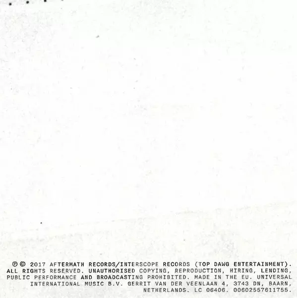 Kendrick Lamar: Damn La version sur CD en Norme édition. Cette édition particulière a été publiée en L'Europe dans la maison d'édition Top Dawg Entertainment En collaboration avec Aftermath Entertainment et Interscope Records Le 21 avril 2017.