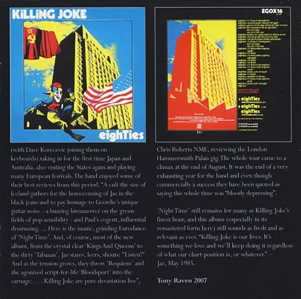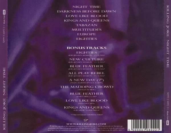 Killing Joke "Night Time" is an album that perfectly captures the feeling of the night. From the dark, brooding opening track to the last song, the album is full of songs that are perfect for a nighttime car ride or just to listen to when you want to feel a little dark and mysterious. While the album isn't perfect, it's great from start to finis...