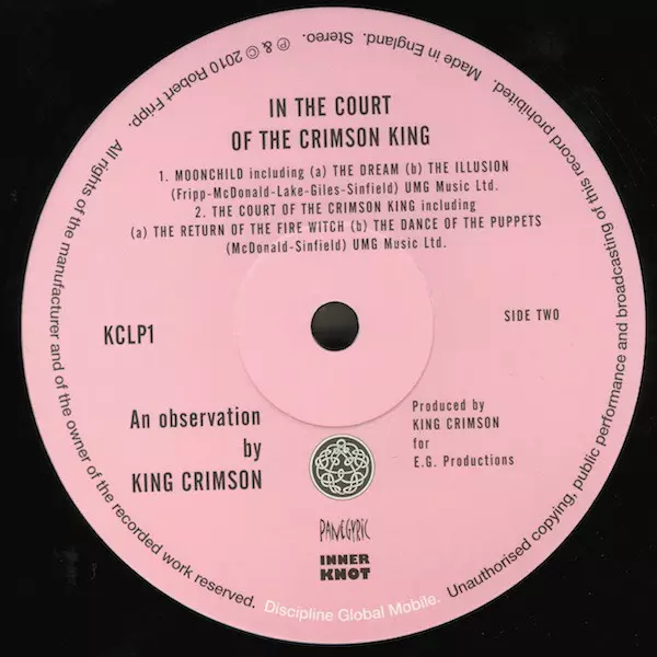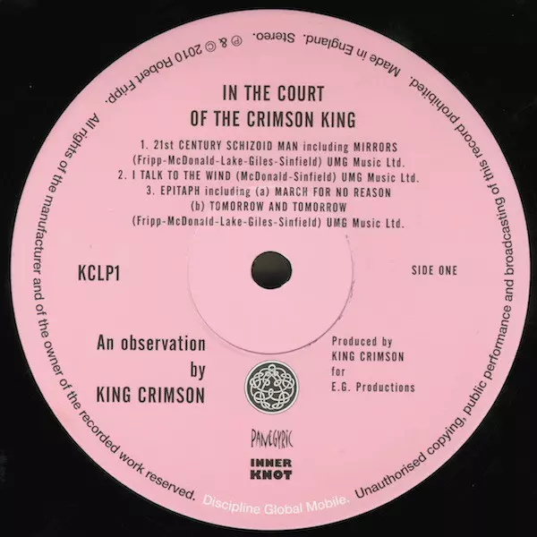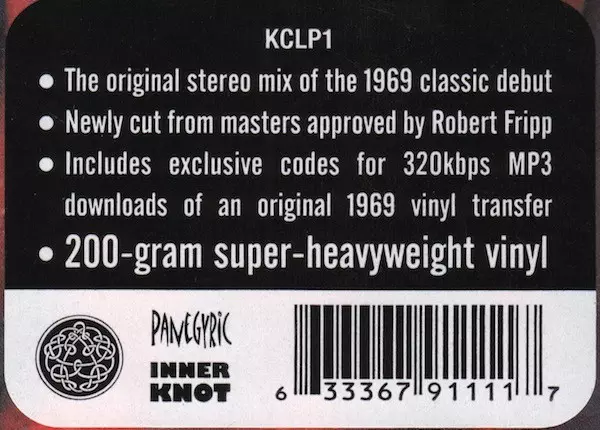 King Crimson: In The Court Of The Crimson King La version sur Le vinyle LP en Norme édition. Cette édition particulière a été publiée en États-Unis et Royaume-Uni dans la maison d'édition Discipline Global Mobile En collaboration avec Panegyric et Inner Knot Le 10 juin 2022.