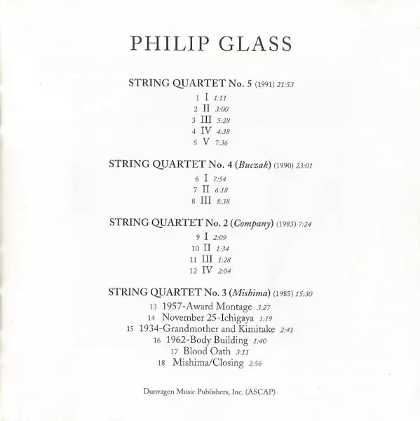 | Artiste | Philip Glass | Kronos Quartet |