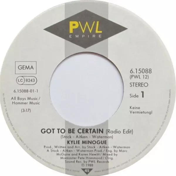 | Maisons d'édition | PWL Empire | PWL Records |