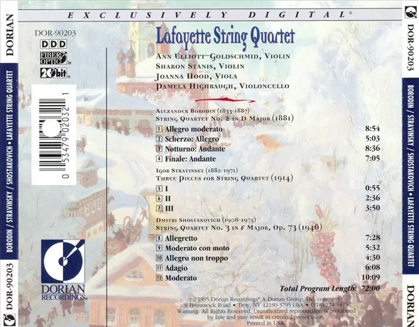 | Artiste | Dmitri Shostakovich | Igor Stravinsky | Alexander Borodin | Lafayette String Quartet |