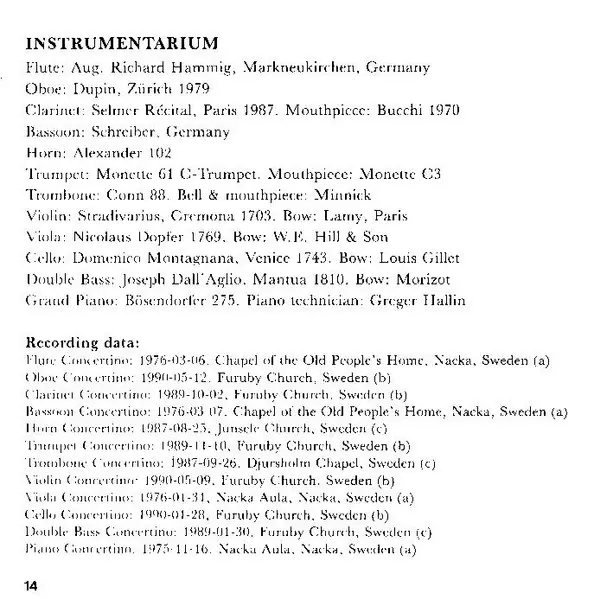 Lars-Erik Larsson: Twelve Concertinos, Op.45 La version sur 2CD en Norme édition. Cette édition particulière a été publiée en Scandinavie dans la maison d'édition BIS Le 21 février 2003. Album couvre tous les genres Musique classique et Neo-Classical.