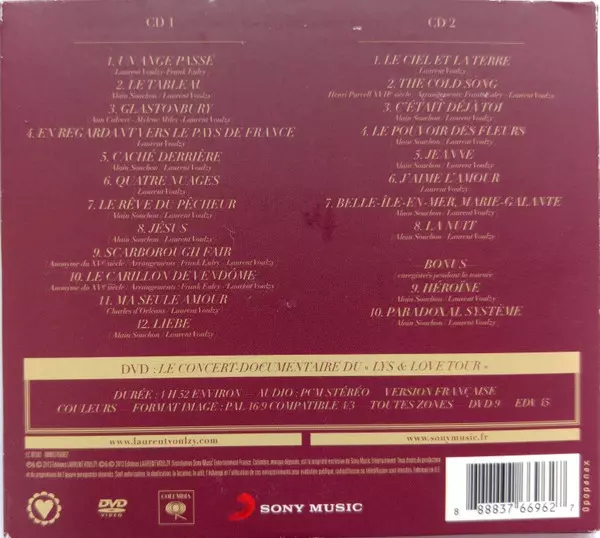 Laurent Voulzy: Lys & Love Tour La version sur 2CD/DVD en Norme édition. Cette édition particulière a été publiée en France dans la maison d'édition Columbia En collaboration avec Sony Music Le 3 décembre 2013. Album couvre tous les genres Pop et Chanson.