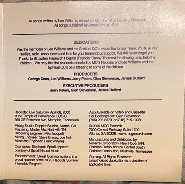 | Artiste | Lee Williams & The Spiritual QC's |