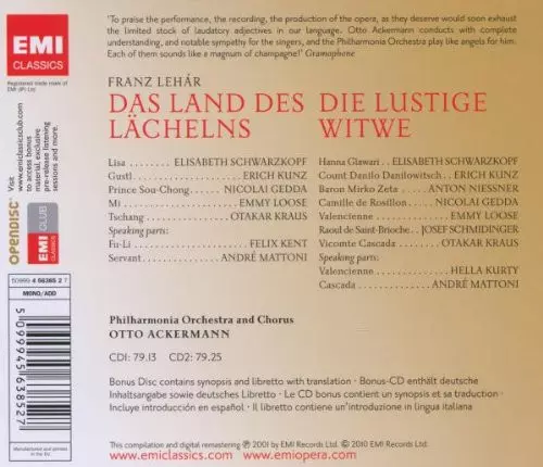 | Artiste | Philharmonia Orchestra | Nicolai Gedda | Elisabeth Schwarzkopf | Franz Lehár | Erich Kunz | Otto Ackermann | Emmy Loose |