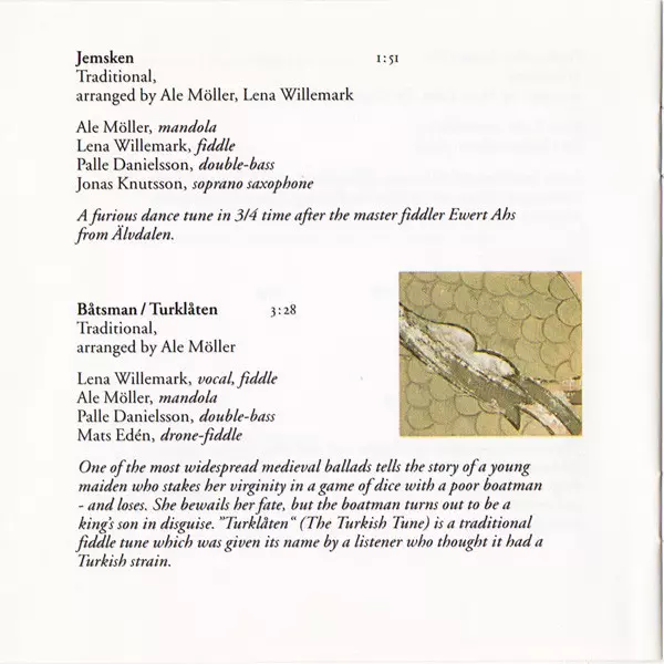Arranged By Ale Möller, Lena Willemark | Composed By Traditional | Double Bass Palle Danielsson | Fiddle Lena Willemark | Mandola Ale Möller | Soprano Saxophone Jonas Knutsson