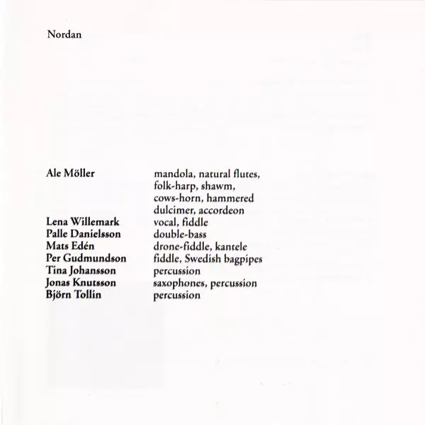 Composed By Ale Möller | Double Bass Palle Danielsson | Fiddle [Drone-Fiddle] Mats Edén | Flute [Natural Flutes] Ale Möller | Percussion Björn Tollin, Jonas Knutsson, Tina Johansson | Voice [Herding-Call] Lena Willemark