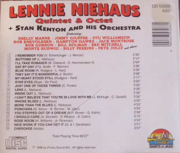 | Artiste | Stan Kenton And His Orchestra | The Lennie Niehaus Octet | Lennie Niehaus Quintet |