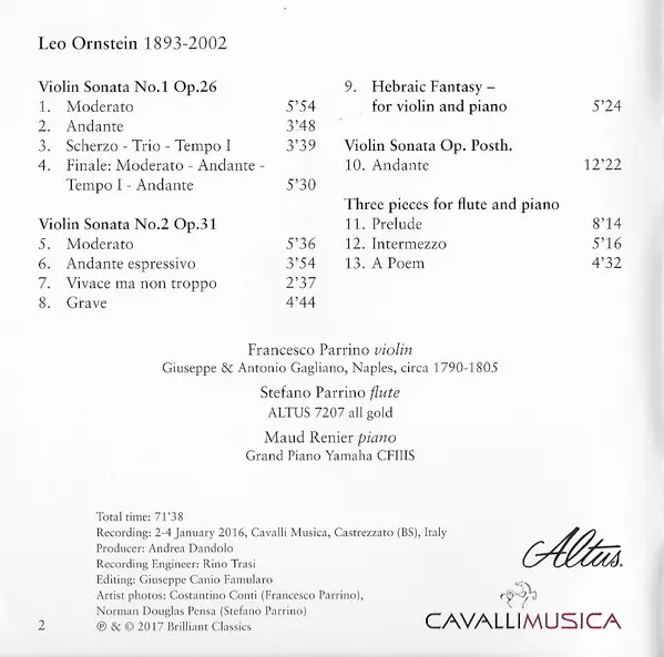 | Artiste | Francesco Parrino | Leo Ornstein | Stefano Parrino | Maud Renier |