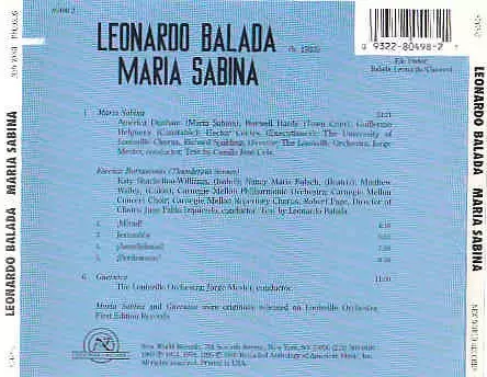 | Titre | Leonardo Balada - Maria Sabina |