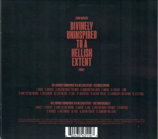 Kritikou oceňované debutové album Lewise Capaldiho "Divinely Uninspired To A Hellish Extent" vychází ve finále jako dvojCD, včetně rozšířené edice s #1 singlem "Before You Go" a hitem "Someone You Loved", který byl streamován více než 1 miliardkrát po celém světě a stal se platinovým v 18 zemích, a dalších 12 skladeb živě z Wembley....