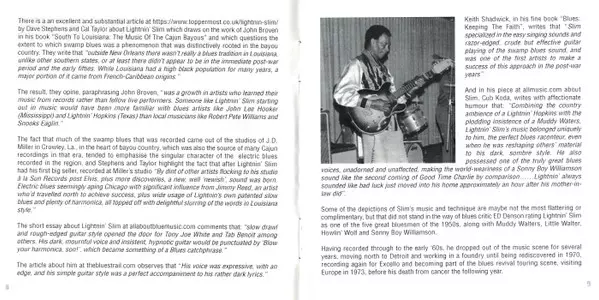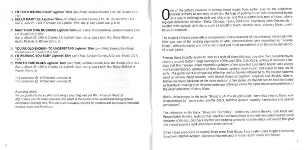 Lightning Slim: The Complete Singles As & Bs - 1954-62 La version sur 2CD en Norme édition. Cette édition particulière a été publiée en ROYAUME-UNI dans la maison d'édition Acrobat Le 17 janvier 2020. Album couvre tous les genres Blues et Blues-Rock.