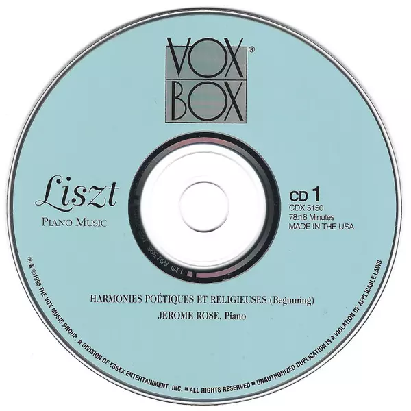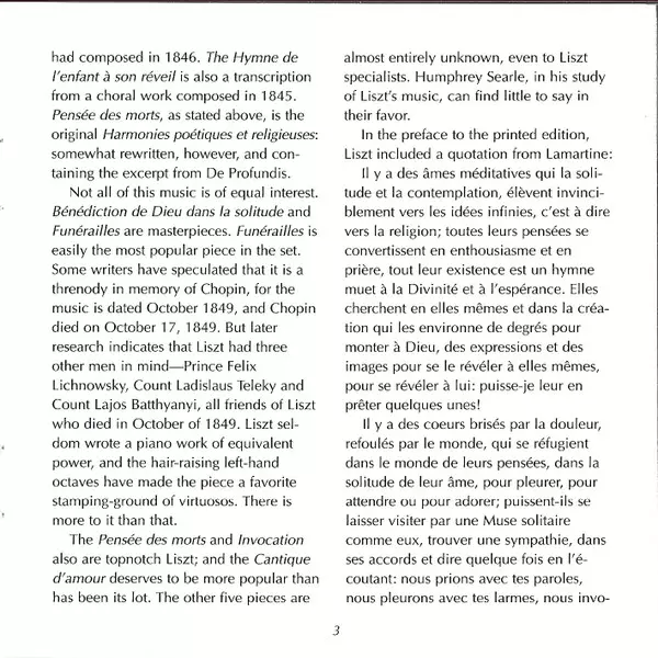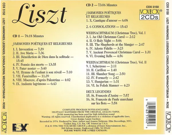 | Titre | Harmonies Poétiques Et Religieuses / 6 Consolations / 2 Légendes / Weihnachtsbaum |