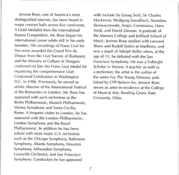 | Artiste | Franz Liszt | Jerome Rose |