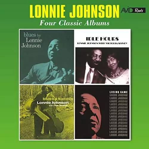 Lonnie Johnson: Four Classic Albums La version sur 2CD en Remasterisé édition. Cette édition particulière a été publiée en ROYAUME-UNI dans la maison d'édition Avid Roots En collaboration avec Avid Entertainment Le 14 janvier 2022. Album couvre tous les genres Blues, Jazz et Country-Blues.