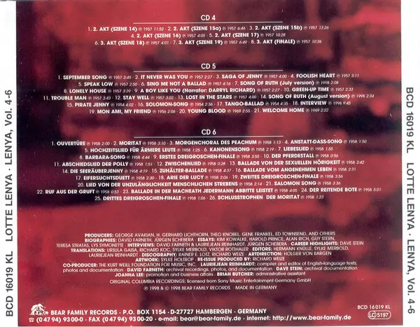 | CD5-3 | Lotte Lenya: Saga Of Jenny | 4:00 min | |