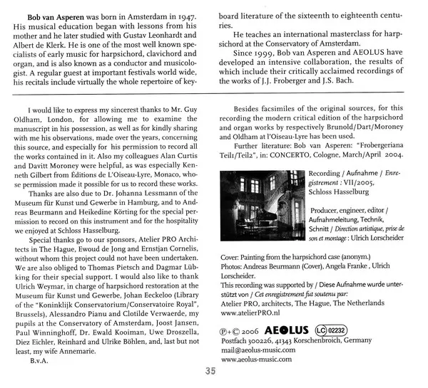 | Artiste | Bob van Asperen | Louis Couperin |