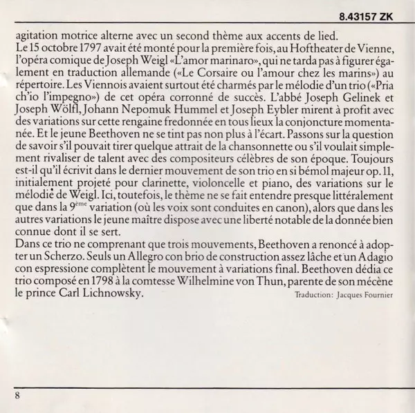 | Titre | Klaviertrios B-dur Op. 11 "Gassenhauer-Trio" & C-moll Op. 1 Nr. 3 |