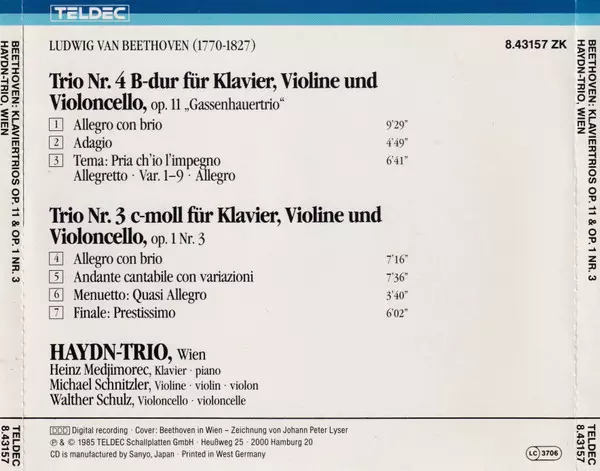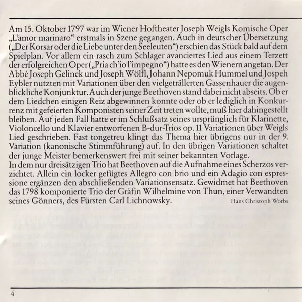 | Trio Nr. 4 B-dur Für Klavier, Violine Und Violoncello, Op. 11 "Gassenhauer-Trio" | ||