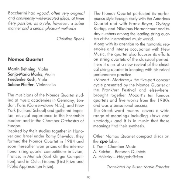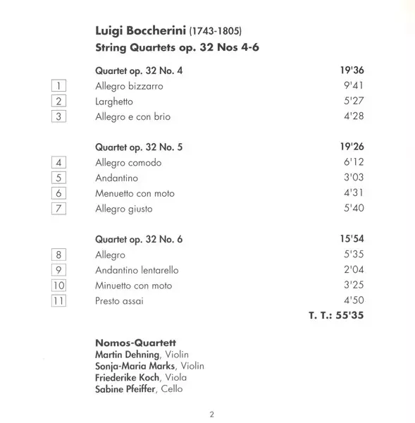 | Artiste | Luigi Boccherini | Nomos Quartett |