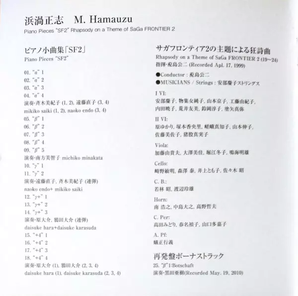 | Titre | Piano Pieces "SF 2" Rhapsody On A Theme Of SaGa Frontier 2 |
