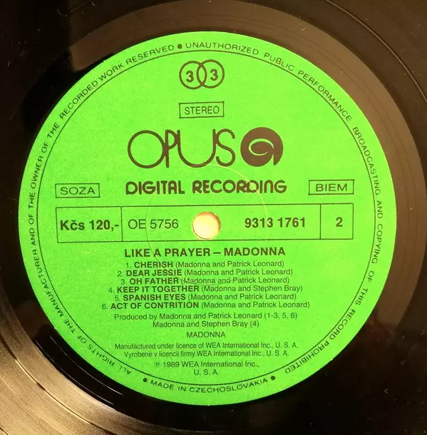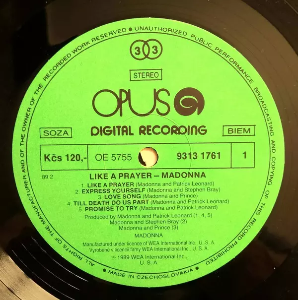 | Plus d'informations sur les disques vinyles | Green Label Opus Vinyl (Czechoslovakia) |