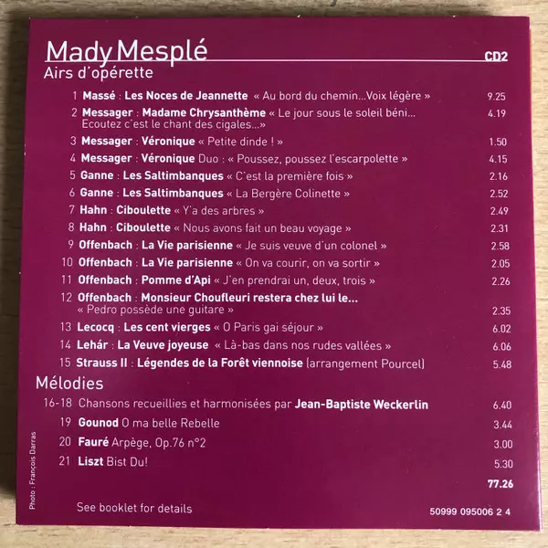Mady Mesplé: Edition Du 80e Anniversaire La version sur 4CD/Coffret en Norme édition. Cette édition particulière a été publiée en France dans la maison d'édition EMI Classics année 2011. Album couvre tous les genres Pop, Musique classique, Opéra, Contemporary classical, Chanson et Operetta.
