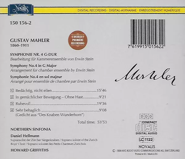 | Artiste | Gustav Mahler | Howard Griffiths | Northern Sinfonia | Erwin Stein | Daniel Hellmann |