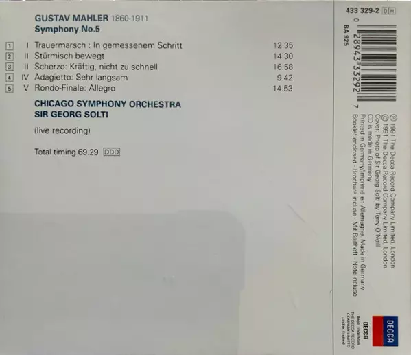 | Artiste | Gustav Mahler | Georg Solti | Chicago Symphony Orchestra |