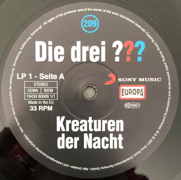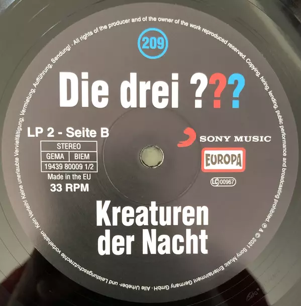 | Plus d'informations sur les disques vinyles | 180g Folge 209 Limited Edition Vinyl |