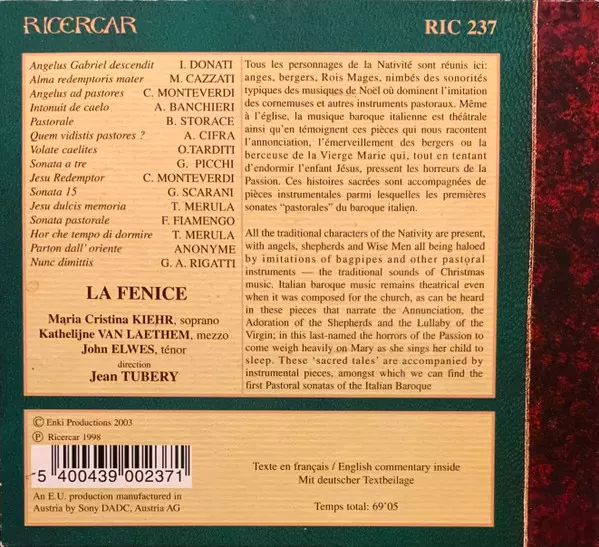 | Artiste | Ensemble La Fenice | Maria Cristina Kiehr | Katelijne Van Laethem | John Elwes |