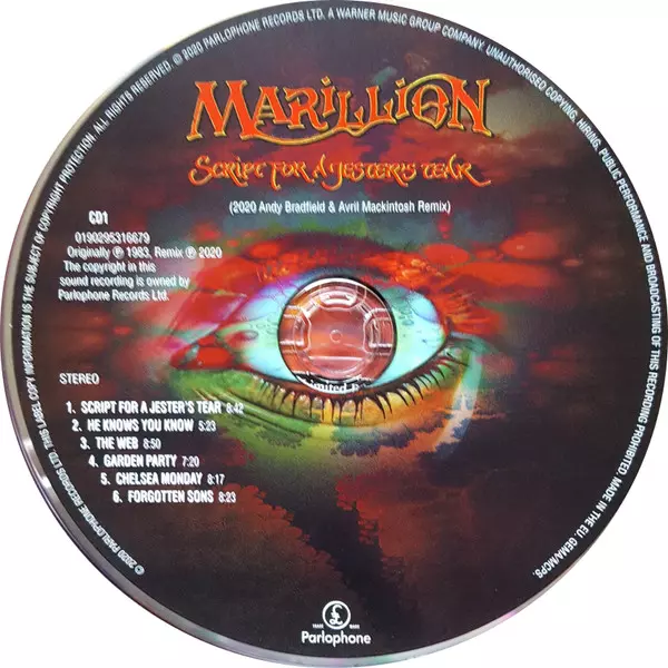 Marillion: Script For A Jester's Tear DLX | LTD La version sur 4CD/Blu-ray en Remasterisé deluxe Limité édition. Cette édition particulière a été publiée en Europe et États-Unis dans la maison d'édition Parlophone Le 17 avril 2020.