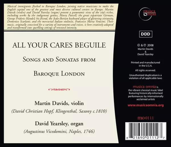 CD David Yearsley: All Your Cares Beguile (Songs & Sonatas From Baroque London)