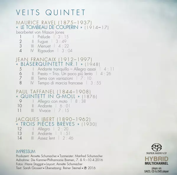 Artiste | Maurice Ravel | Jacques Ibert | Jean Françaix | Claude-Paul Taffanel | Veits Quintet |
