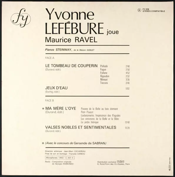| Artiste | Maurice Ravel | Yvonne Lefébure |