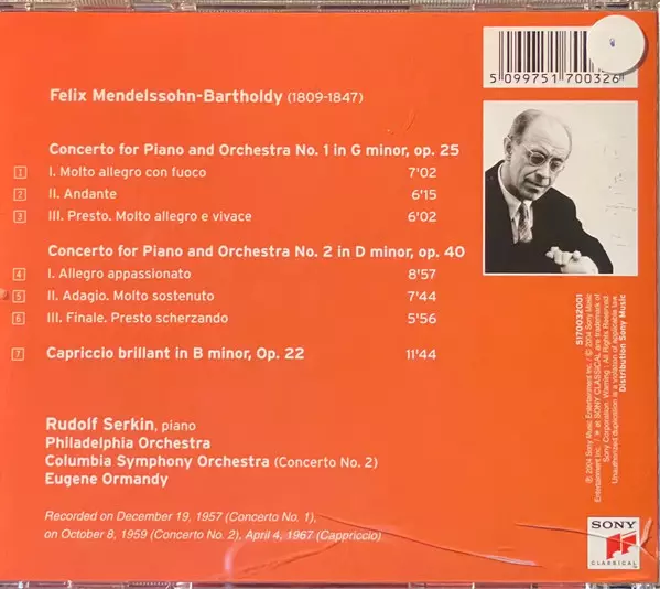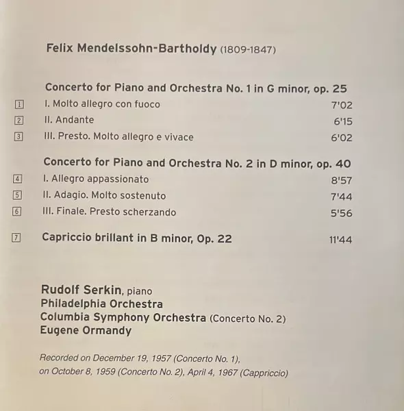| Artiste | Felix Mendelssohn-Bartholdy | Rudolf Serkin |