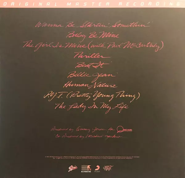 Michael Jackson: Thriller LTD | NUM La version sur Le vinyle LP en Limité Numéroté individuellement Remasterisé édition. Cette édition particulière a été publiée en ÉTATS-UNIS dans la maison d'édition Mobile Fidelity Sound Lab En collaboration avec Epic et MJJ Productions Le 25 novembre 2022.