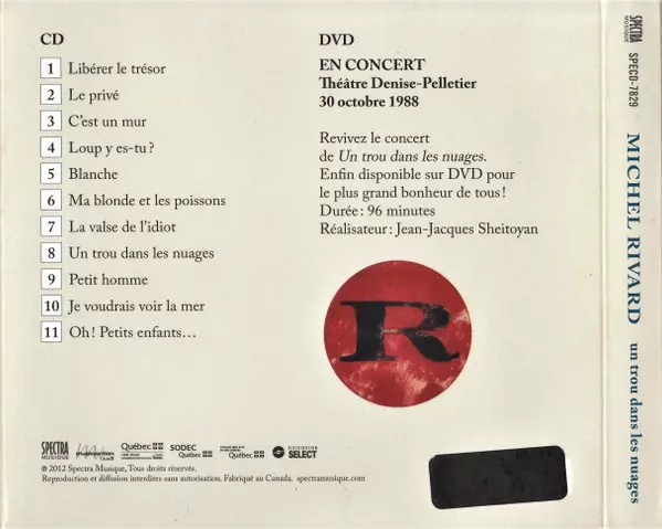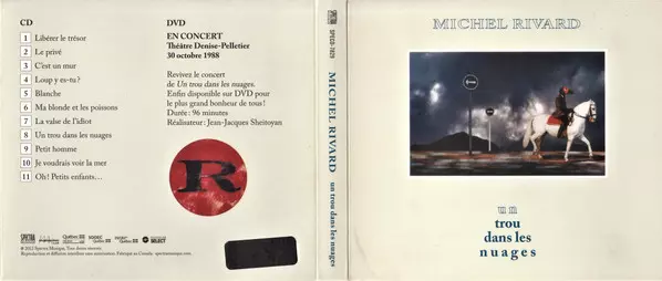 Michel Rivard: Un Trou Dans Les Nuages La version sur CD/DVD en Norme édition. Cette édition particulière a été publiée en Canada dans la maison d'édition Spectra Musique Le 3 avril 2012. Album couvre tous les genres Pop, Ballade et Chanson.