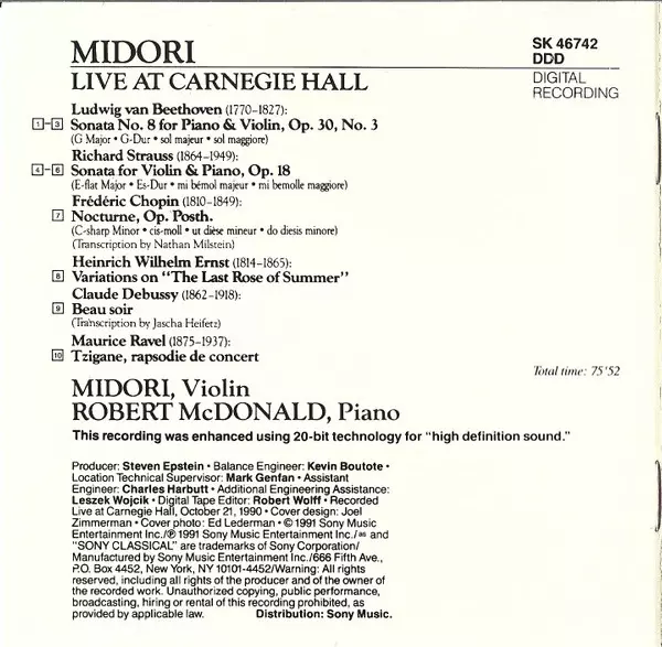 | Maisons d'édition | Sony Classical |