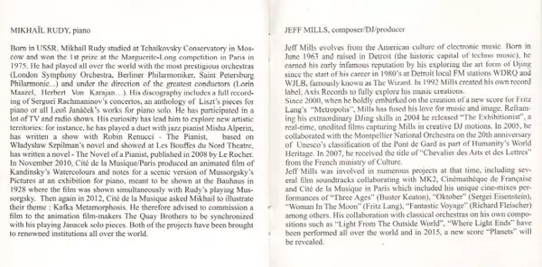 | Artiste | Jeff Mills | Mikhaïl Rudy |