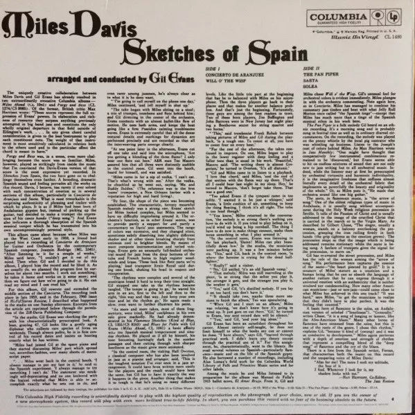"Sketches Of Spain" is one of Miles Davis's most melodic compositions, and thus proved to be one of the most accessible and less improvised, breaking away from strict notions of jazz. It is one of four albums on which Davis and Gil Evans collaborated with a small orchestra of horns and percussion. "Sketches Of Spain" is in the spirit of Spanish ...
