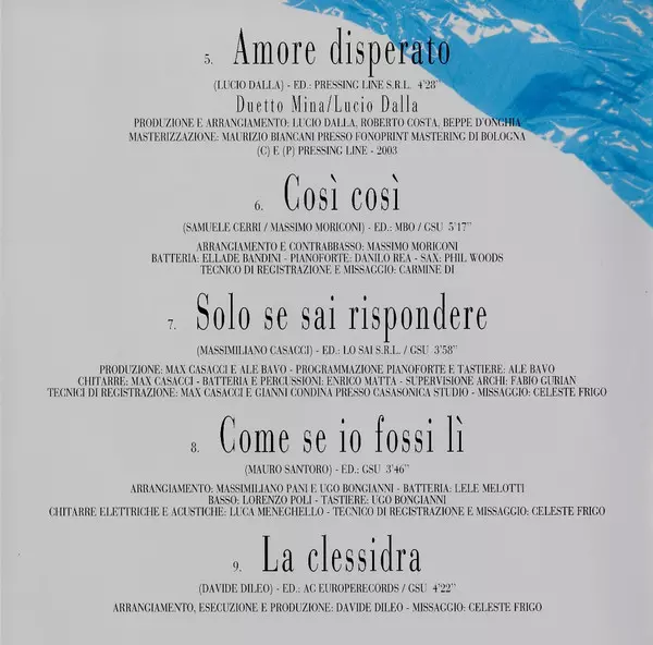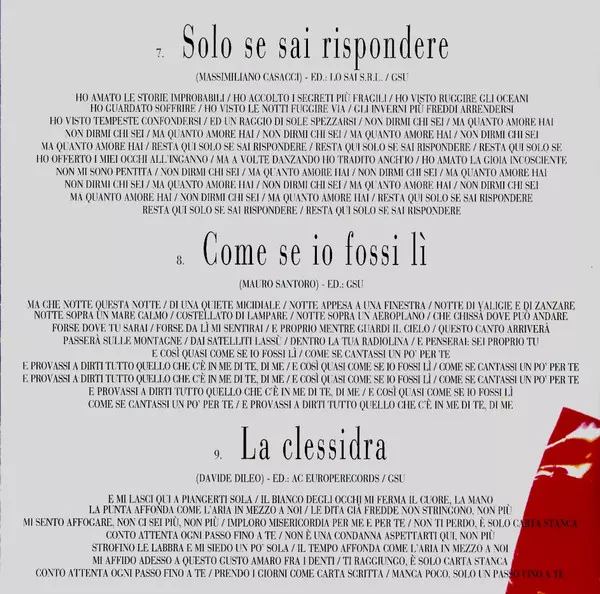 Arranged By Massimiliano Pani | Arranged By, Keyboards Nicolò Fragile | Bass Caporale Bruno | Directed By [Strings], Arranged By [Strings] Gianni Ferrio | Drums Alfredo Golino | Guitar Luca Colombo (6) | Mixed By Celeste Frigo | Recorded By Ignazio Morviducci | Written-By Fabrizio Berlincioni, Silvio Amato