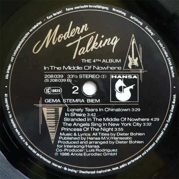 | Plus d'informations sur les disques vinyles | Hansa German pressing |