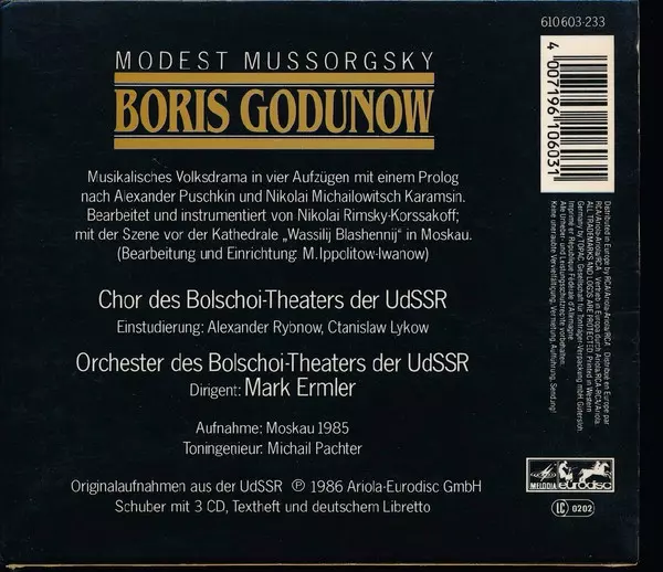 | Titre | Boris Godunow - Gesamtaufnahme in russischer Sprache |