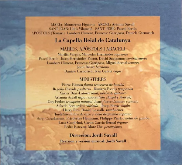 | Artiste | Jordi Savall | Pascal Bertin | Arianna Savall | La Capella Reial De Catalunya | Montserrat Figueras | Lluís Vilamajó | Daniele Carnovich | Lambert Climent | Francesc Garrigosa |
