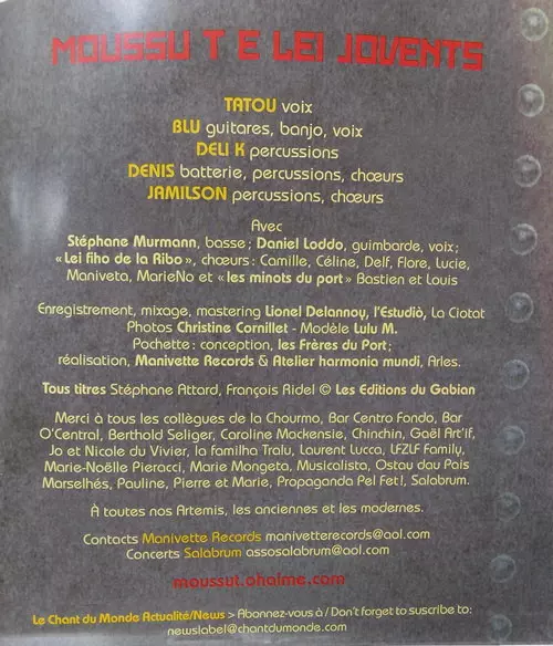 | Artiste | Moussu T E Lei Jovents |