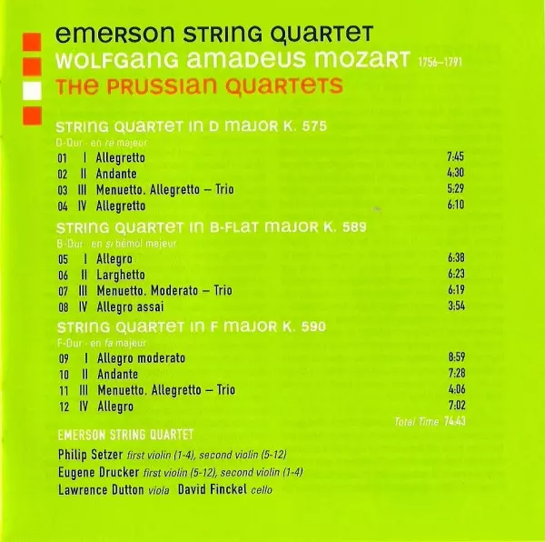 | Artiste | Wolfgang Amadeus Mozart | Emerson String Quartet |
